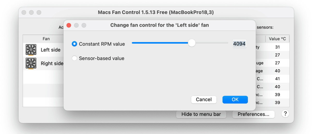 - 或者,您可以為兩個風扇選擇基於傳感器的值,然後單擊“確定”。