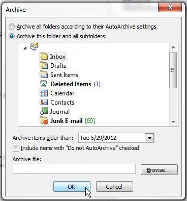 幸運的是,您可以在 Outlook 2010 中存檔舊電子郵件以幫助緩解此問題。