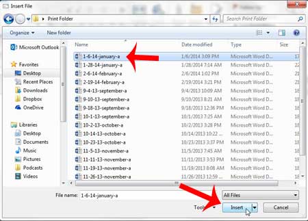 步驟 4:瀏覽到要附加到電子郵件的文件,單擊一次將其選中,然後單擊插入按鈕位於窗口底部。