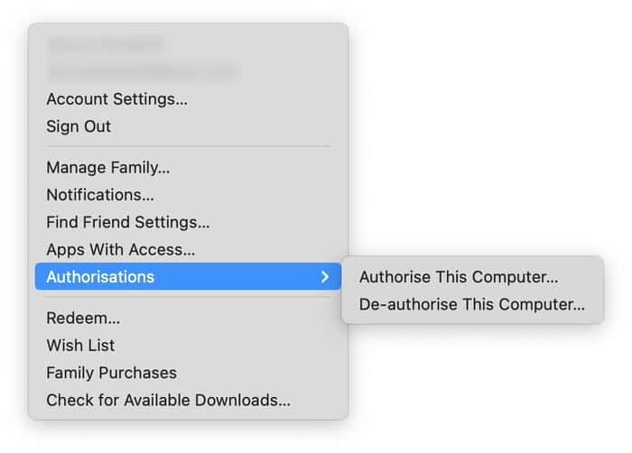 - 單擊帳戶 > 授權,然後選擇取消對這台計算機的授權。