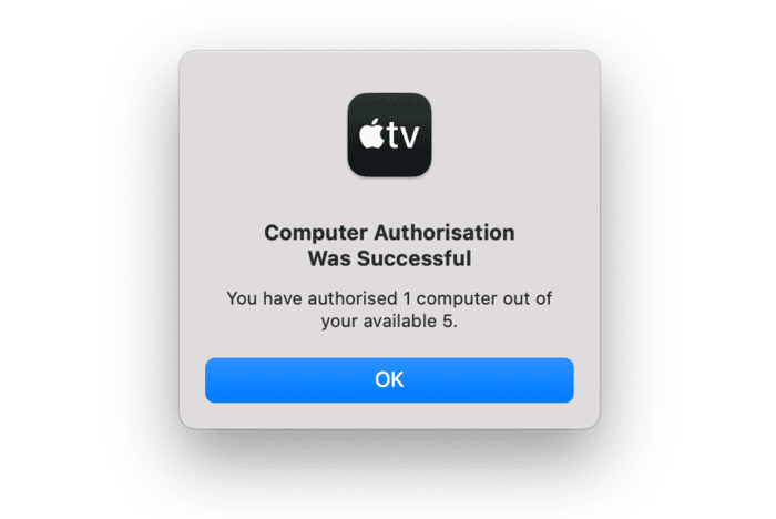 Apple 限制了您可以使用 Apple TV 進行流式傳輸或觀看從 iTunes Store 租借或購買的電影和電視節目的電腦數量。為了跟踪您使用的計算機數量,它堅持要求您首先對它們進行授權。您一次最多可以授權五個。按照上述步驟為您的 MacBook 授權 Apple TV。