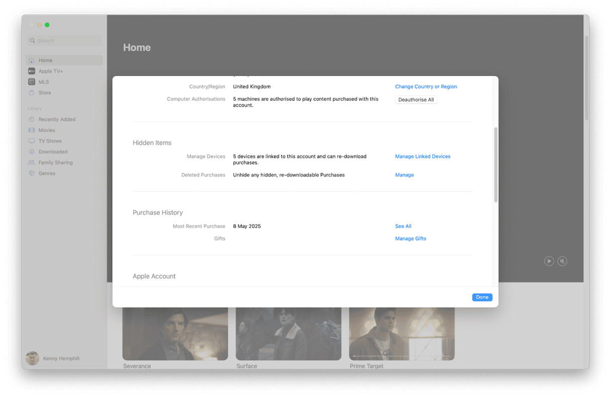 值得注意的是,您為 Apple TV 和音樂授權的計算機是相同的。比如說,你不能為電視和電影授權五個,而為音樂授權另外五個。此外,當您授權一台計算機使用 Apple TV 時,它會自動與您的 Apple 帳戶關聯以進行購買。與您的 Apple 帳戶關聯用於購買的 iPhone 和 iPad 不計入五台電腦的限制。