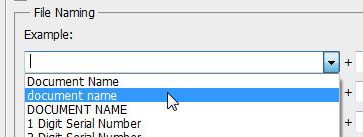 第14步:單擊“文件命名”部分中左上角的空下拉菜單,然後單擊“文檔名稱”。