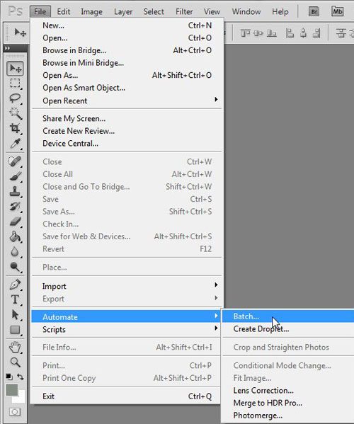 第9步:單擊窗口頂部的“文件”,單擊“自動化”,然後單擊“批處理”。