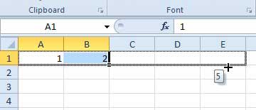 步驟5:單擊並按住鼠標左鍵並將其向右拖動以選擇要自動編號的單元格。請注意,光標下方的數字將顯示將輸入到當前所選單元格中的值。