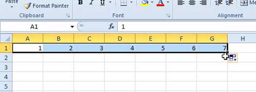 本教程假設您想要在列頂部(第一行)填充一系列單元格,其中的數字從左到右遞增一。