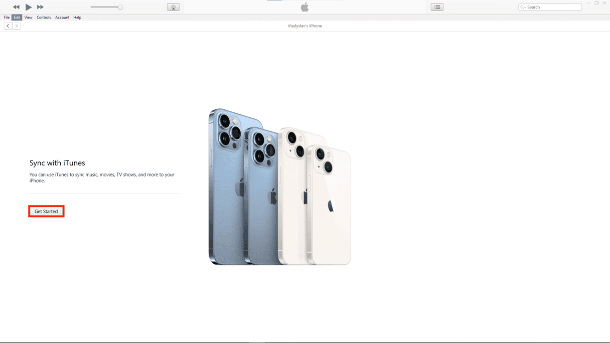 - 在您的電腦上打開 iTunes。您的 iPhone 應出現在 iTunes 窗口的左上角。