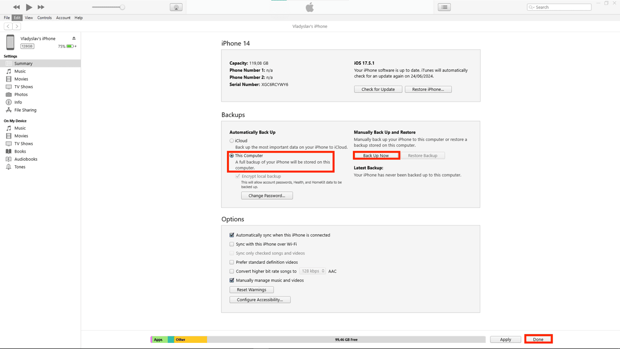 使用 iTunes 的好處是它可以為您的 iPhone 拍攝快照,備份設備的大部分數據和設置。另一方面,您沒有太多權限訪問或控制 iTunes 備份。該文件隱藏在 iTunes 的庫文件中,即使找到它,也無法輕鬆看到其內容。