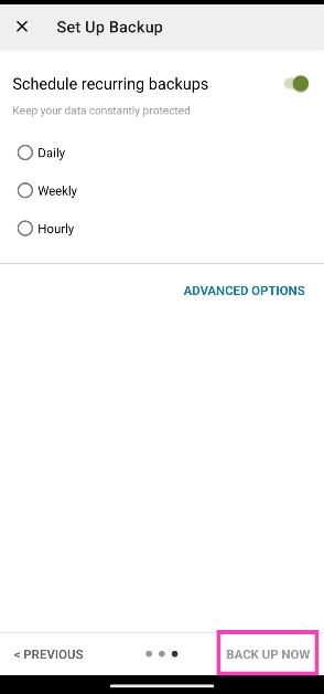 第9步:選擇一個備份頻率。要創建即時備份,請點擊立即備份。