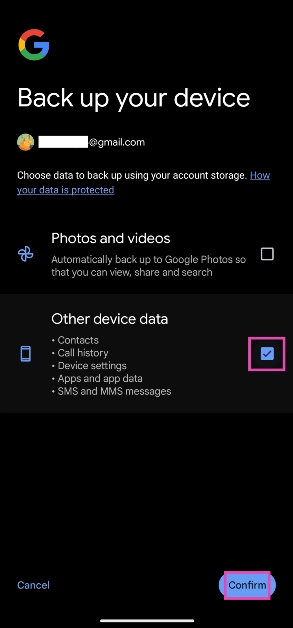 前往設置>Google>管理備份,點擊“其他設備數據”,然後點擊“確認”。