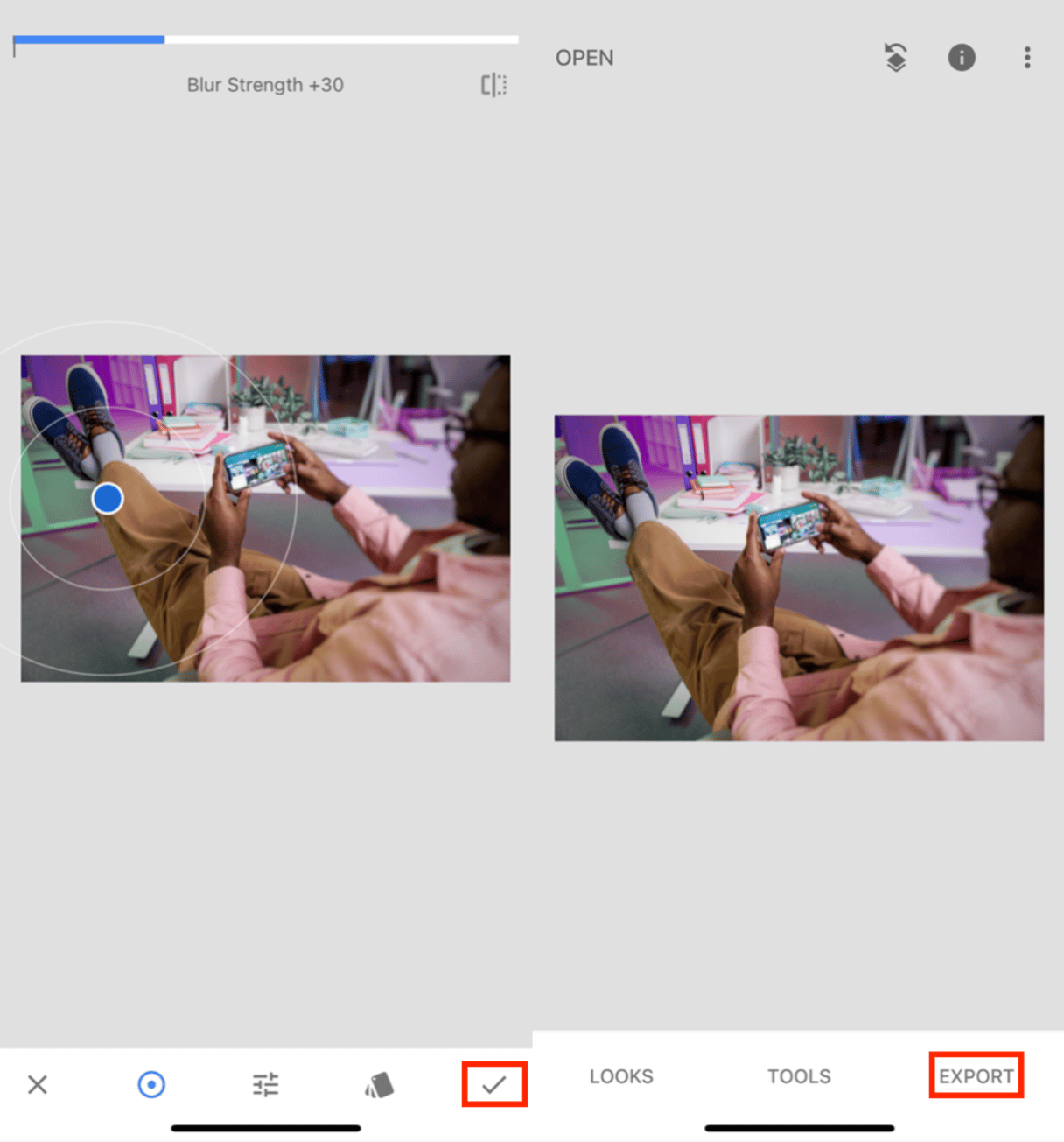 如何使用 Snapseed 在 iPhone 上模糊照片