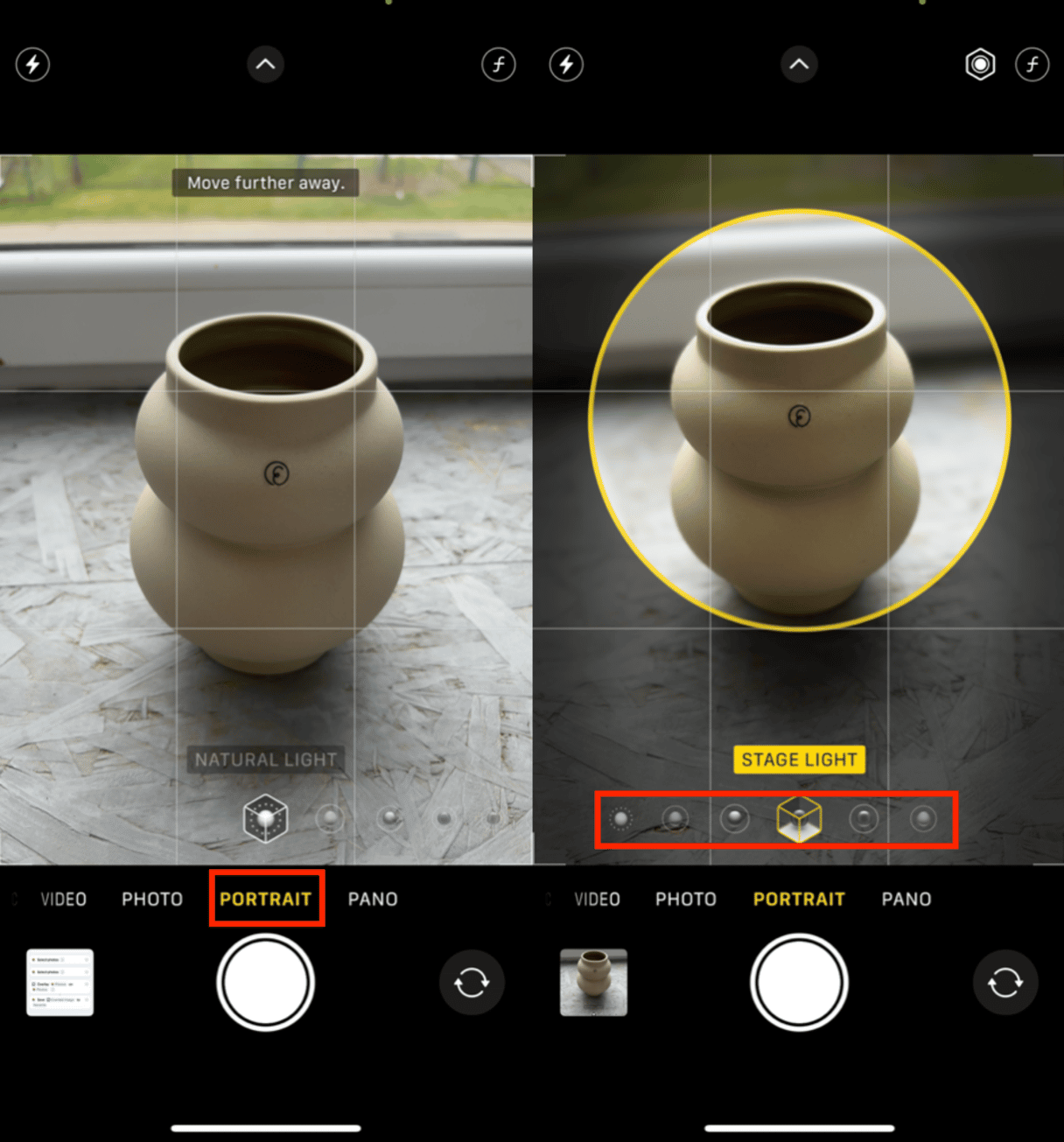 - 當人像模式確定了您的理想構圖時,燈光橫幅將變成黃色。