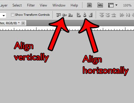 - 單擊垂直中心對齊或水平中心對齊按鈕位於窗口頂部附近,具體取決於您要使用哪種類型的方法來使圖層內容居中。