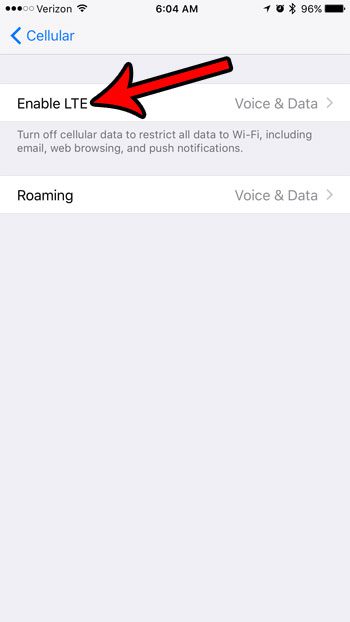 下面我們的指南繼續提供有關在 iPhone 7 上在 3G 和 LTE 網絡之間切換的更多信息,包括這些步驟的圖片。