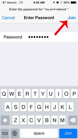 第8步:輸入密碼,然後點擊加入按鈕位於屏幕右上角。