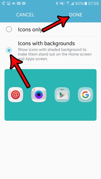 第五步:點擊左邊的圓圈帶背景的圖標選擇該選項。您將看到一個示例,說明此更改後您的應用程序圖標的外觀。然後,您可以點擊屏幕右上角的“完成”按鈕來應用更改。
