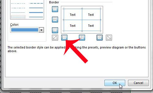 第7步:單擊窗口右側邊框預覽周圍的按鈕以添加邊框。單擊好的窗口右下角的按鈕可將這些邊框設置應用到所選單元格。