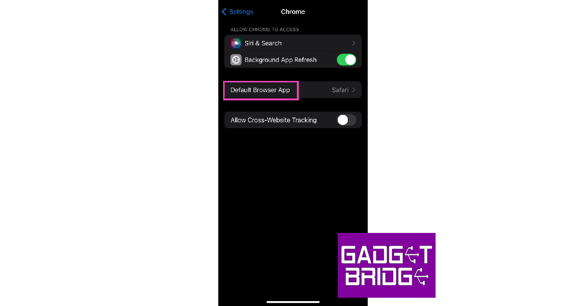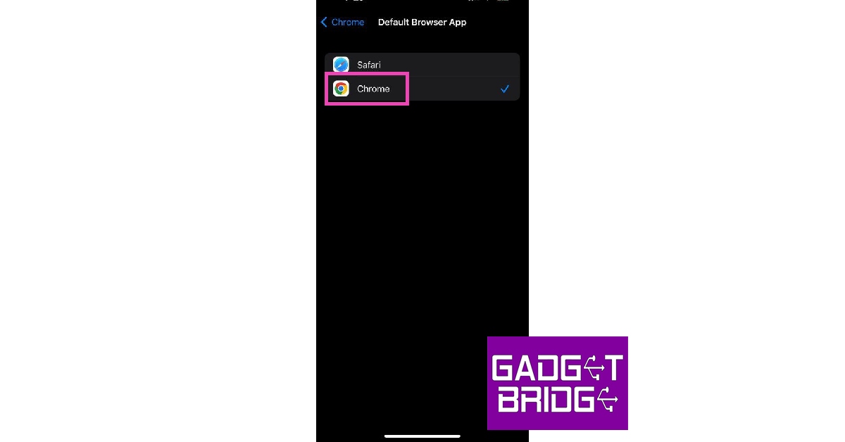 要將 Google Chrome 設置為 iPhone 上的默認網絡瀏覽器,請轉至設置>Chrome>默認瀏覽器應用並選擇Chrome。