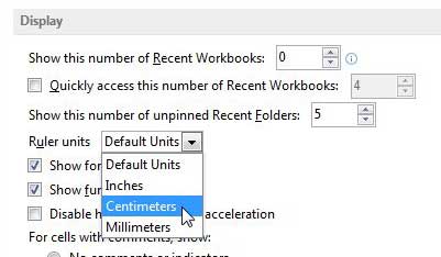 請注意,更改默認測量單位也將適用於其他一些位置,例如頁面大小。但是,它不會轉換您在單元格中輸入的任何值。