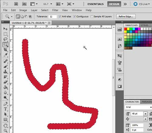 例如,在下圖中,我使用魔棒工具選擇了紅色畫筆描邊。