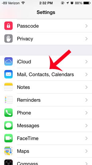 步驟 2:向下滾動並觸摸郵件、通訊錄、日曆選項。