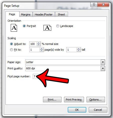 以下是如何更改 Excel 2010 中的首頁頁碼 –