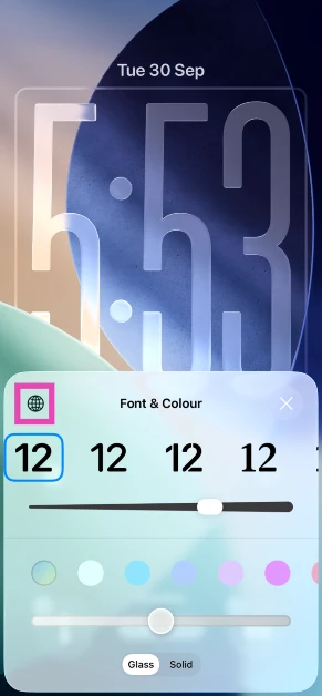 前往設置>壁紙,在鎖定屏幕面板上點擊“自定義”。點擊時鍾小部件並點擊彈出菜單上的地球圖標。從列表中選擇一個腳本並點擊“完成”。