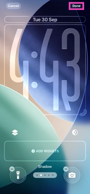 前往設置>壁紙,點擊“自定義”,然後選擇時鐘的默認字體。按住時鍾小部件的右下角並將其向下拖動以使其變大。