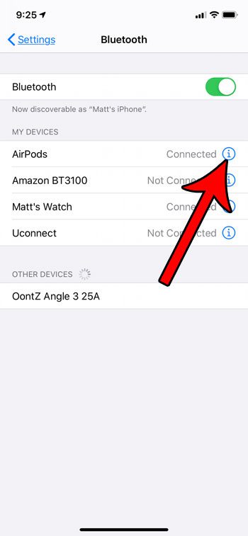 我們的指南在下文中繼續提供有關如何從 iPhone 更改 AirPods 名稱的更多信息,包括這些步驟的圖片。
