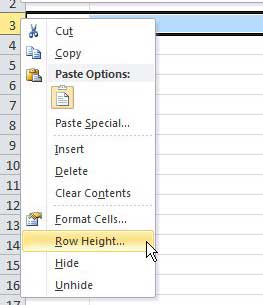 現在我們已經更改了列的寬度,我們將執行非常相似的操作來更改高度。右鍵單擊行標題(即電子表格最左側的數字),然後單擊行高選項。