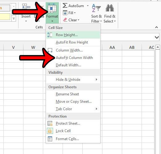 如果您這樣做有困難,您還可以通過單擊自動調整列格式按鈕在細胞功能區部分,然後單擊自動調整列寬選項。