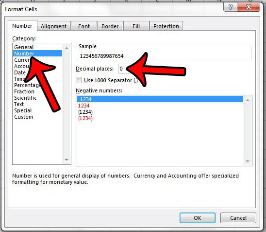 第 6 步:選擇數字根據類別在窗口左側部分,更改中的值小數位字段到0,然後單擊好的按鈕。