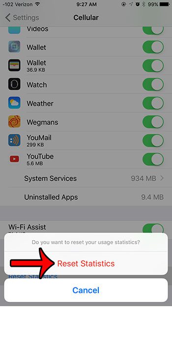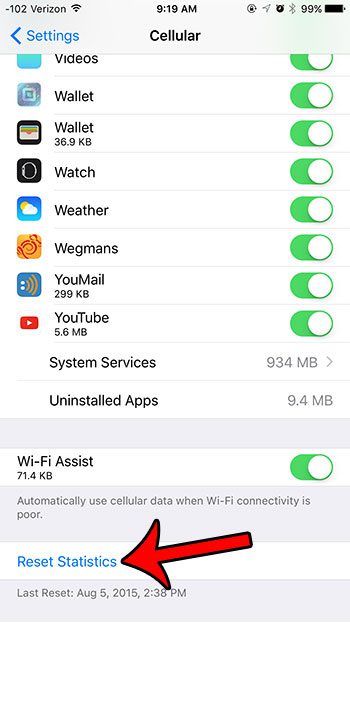 如果您想查看特定時間段內的數據使用情況,則需要重置統計數據並在該時間段過後再次檢查。您可以通過滾動到此屏幕底部,然後點擊重置統計數據按鈕。