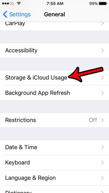 步驟 3:觸摸存儲和 iCloud 使用情況按鈕。