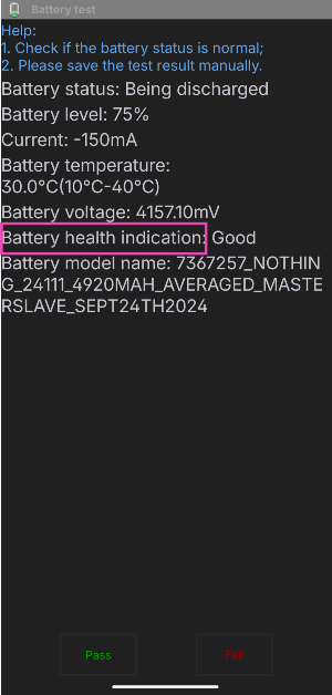 類型*#*#0#*#*在撥號器中,轉到電池部分,檢查 Nothing Phone 的電池運行狀況。