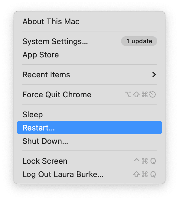 是的,這很明顯,但快速重新啟動實際上可以解決大量故障,所以如果您還沒有,請測試一下。從 Apple 主菜單中點擊“重新啟動”。