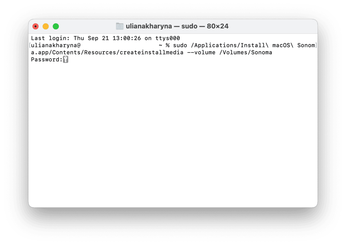 sudo /Applications/Install macOS Sonoma.app/Contents/Resources/createinstallmedia --volume /Volumes/Sonoma