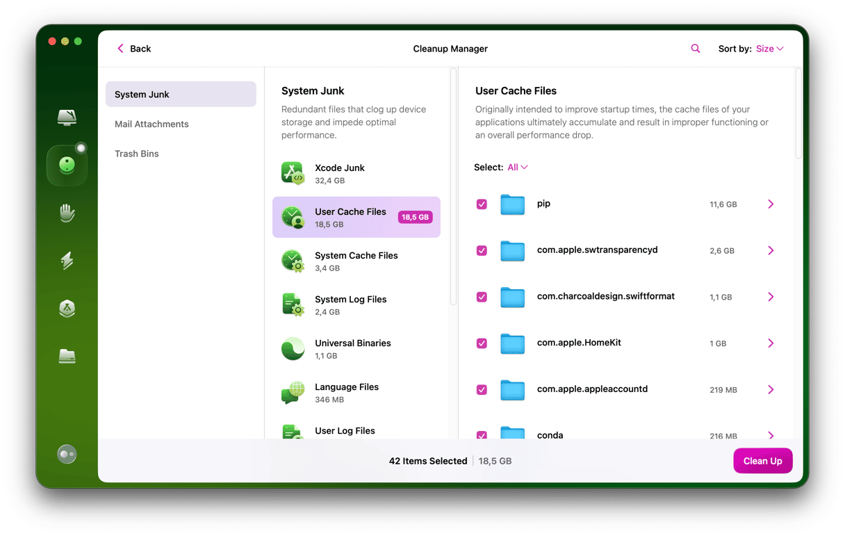 最明顯的原因是啟動磁盤上的空間不足。雖然您可以採取很多措施來釋放磁盤空間,包括使用 Apple 自己的存儲管理工具,但最好從清除積累的不需要的垃圾開始。這樣,您不僅可以釋放空間,還可以增強您的 Mac 性能並幫助其運行更順暢。