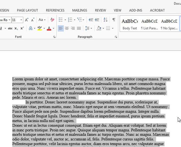 步驟 2:單擊文檔內的某處,然後按Ctrl + A使用鍵盤選擇文檔的全部內容。