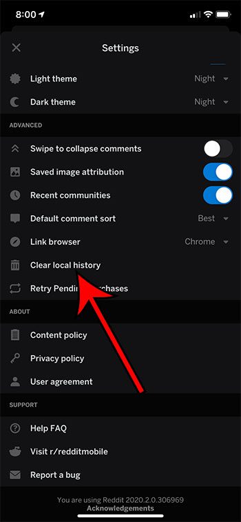 如何在 Reddit iPhone 應用程序中清除本地歷史記錄