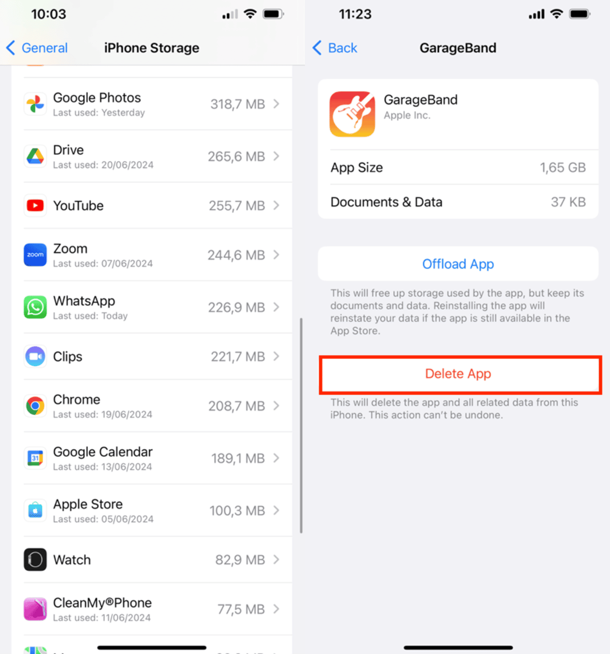 現在,重新安裝您剛剛刪除的應用程序。您可以返回 iPhone 存儲空間。關鍵的改變將會發生。該應用程序將佔用比以前更少的空間。