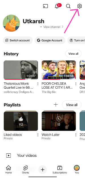 轉到“您”選項卡,然後點擊“打開隱身模式”以在 YouTube 上打開隱身模式。您在此模式下觀看的視頻不會註冊到您的帳戶中。