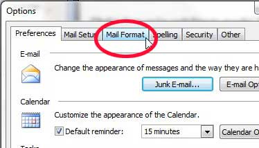 - 選擇郵件格式選項卡。