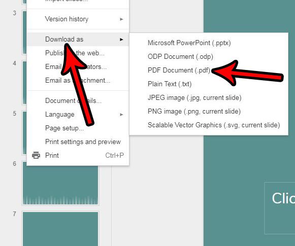 我們的文章下面繼續提供有關將 Google 幻燈片文件保存為 PDF 文件的更多信息,包括這些步驟的圖片。