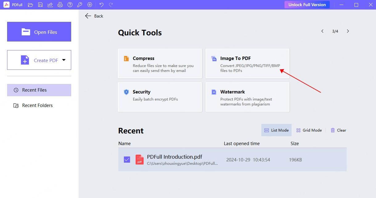 步驟2打開 PDFull 並選擇“圖像轉PDF”選項從“快速工具”部分。