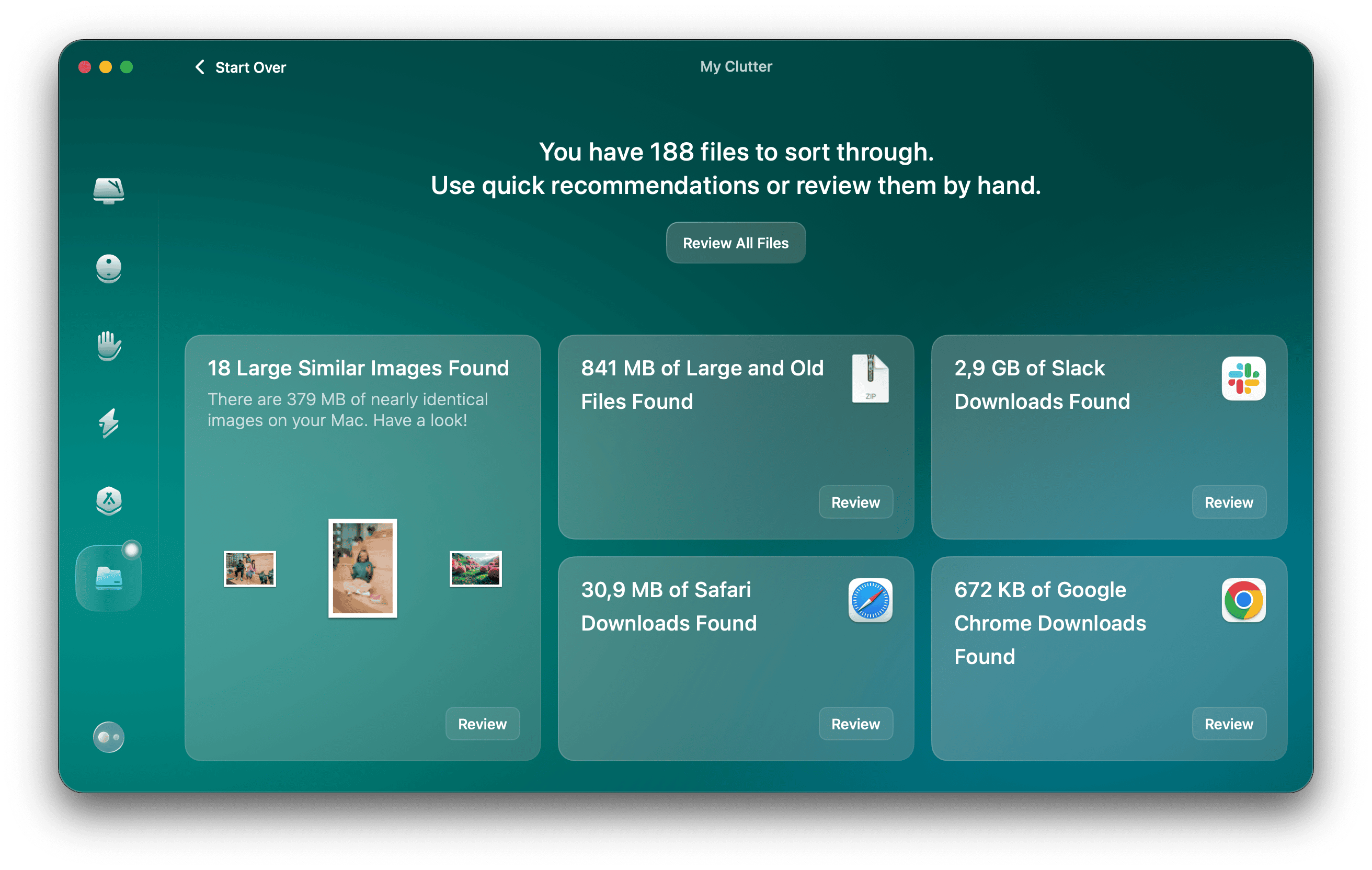 無需花費數小時試圖查找所有不需要的、重複的或外觀相似的圖像和屏幕截圖,而是使用 CleanMyMac 等專用 Mac 清理器來為您完成所有艱苦的工作。