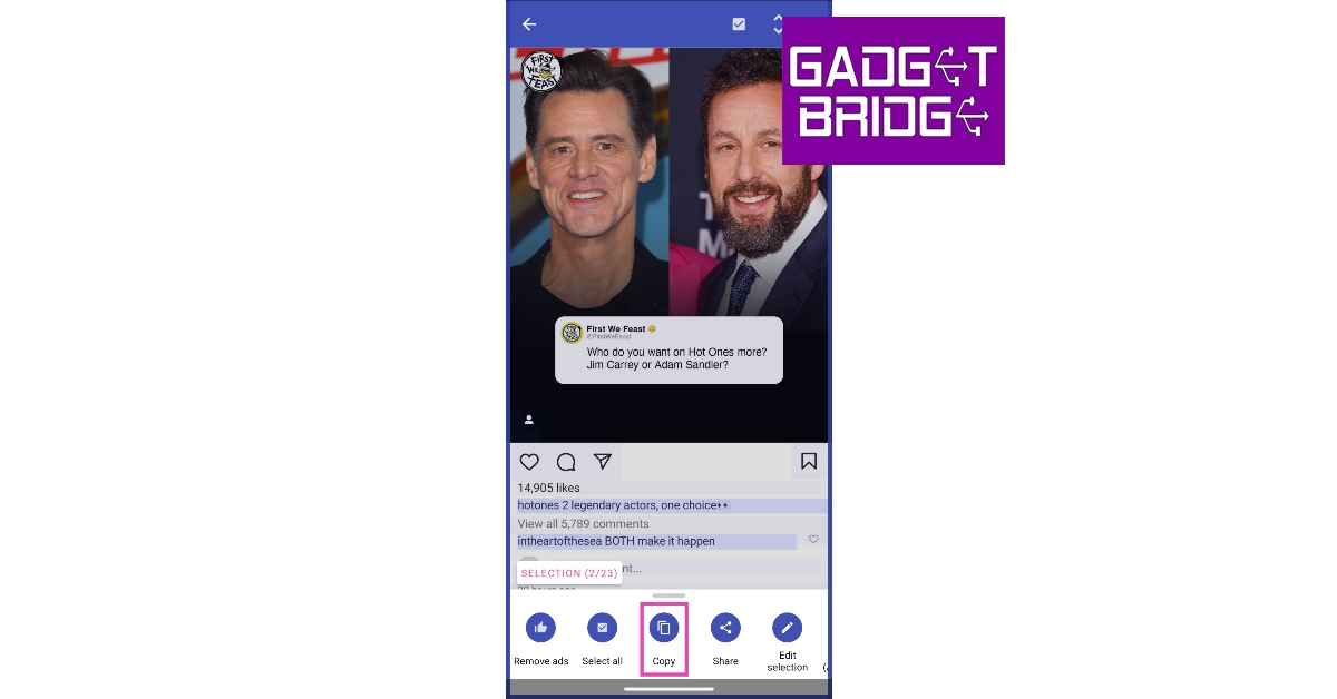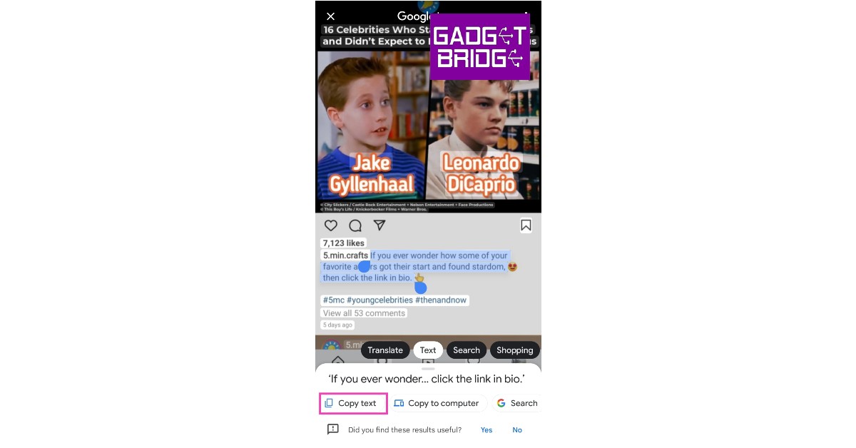 步驟3:點擊文字並從要復制的圖像中選擇文本。