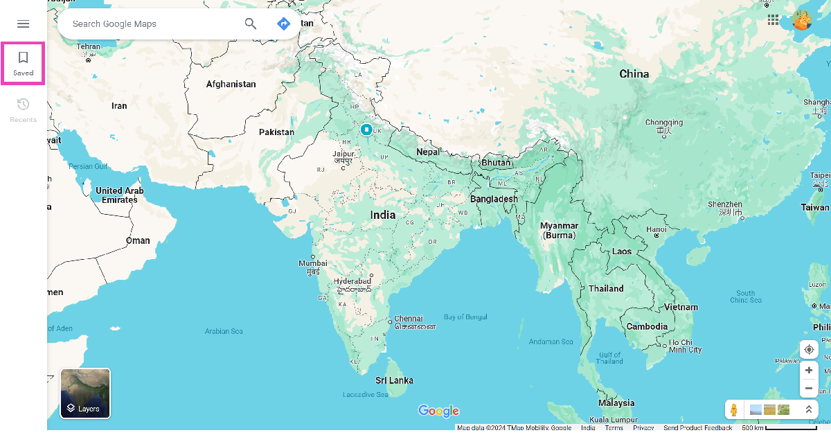 步驟一:前往 Google 地圖並點擊已保存在側邊欄。