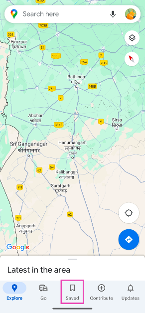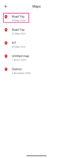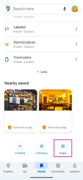 啟動 Google 地圖應用程序,轉到“已保存”選項卡,點擊“地圖”,然後選擇您的自定義地圖。