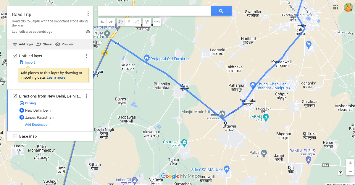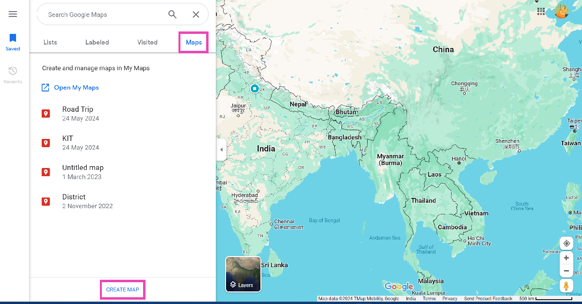 我的地圖只能在 PC 上創建和編輯。它們可以離線保存並與其他用戶共享。您還可以在您的網站上嵌入“我的地圖”。 “我的地圖”上的多種自定義選項允許您標記特定位置、更改路線、添加文本、視頻、圖像等。
